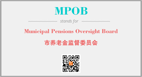 英文缩略词“MPOB”经常作为“Municipal Pensions Oversight Board”的英文缩写来使用,中文表示:“市养老金监督委员会”。本文将详细介绍英文缩写词MPOB所代表英文单词,其对应的中文拼音、详细解释以及在英语中的流行度。此外,还有关于缩略词MPOB的分类、应用领域及相关应用示例等。