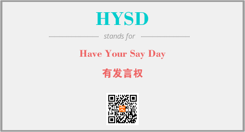 以上为Have Your Say Day英文缩略词HYSD的中文解释,以及该英文缩写在英语的流行度、分类和应用领域方面的信息。