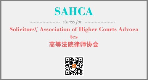 上述内容是“Solicitors\' Association of Higher Courts Advocates”作为“SAHCA”的缩写,解释为“高等法院律师协会”时的信息,以及英文缩略词SAHCA所代表的英文单词,其对应的中文拼音、详细解释以及在英文中的流行度和相关分类、应用领域及应用示例等。