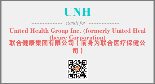 上述内容是“United Health Group Inc. (formerly United Healthcare Corporation)”作为“UNH”的缩写,解释为“联合健康集团有限公司(前身为联合医疗保健公司)”时的信息,以及英文缩略词UNH所代表的英文单词,其对应的中文拼音、详细解释以及在英文中的流行度和相关分类、应用领域及应用示例等。