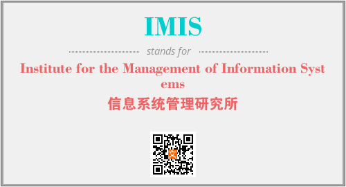 上述内容是“Institute for the Management of Information Systems”作为“IMIS”的缩写,解释为“信息系统管理研究所”时的信息,以及英文缩略词IMIS所代表的英文单词,其对应的中文拼音、详细解释以及在英文中的流行度和相关分类、应用领域及应用示例等。