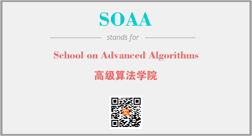 上述内容是“School on Advanced Algorithms”作为“SOAA”的缩写,解释为“高级算法学院”时的信息,以及英文缩略词SOAA所代表的英文单词,其对应的中文拼音、详细解释以及在英文中的流行度和相关分类、应用领域及应用示例等。