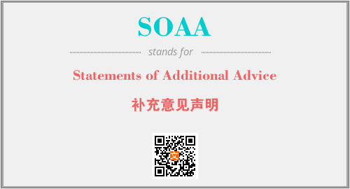 以上为Statements of Additional Advice英文缩略词SOAA的中文解释,以及该英文缩写在英语的流行度、分类和应用领域方面的信息。