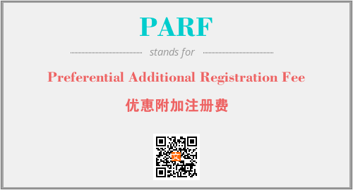 上述内容是“Preferential Additional Registration Fee”作为“PARF”的缩写,解释为“优惠附加注册费”时的信息,以及英文缩略词PARF所代表的英文单词,其对应的中文拼音、详细解释以及在英文中的流行度和相关分类、应用领域及应用示例等。