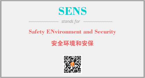 英文缩略词“SENS”经常作为“Safety ENvironment and Security”的英文缩写来使用,中文表示:“安全环境和安保”。本文将详细介绍英文缩写词SENS所代表英文单词,其对应的中文拼音、详细解释以及在英语中的流行度。此外,还有关于缩略词SENS的分类、应用领域及相关应用示例等。