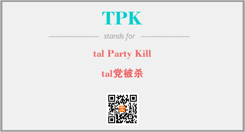 英文缩略词“TPK”经常作为“tal Party Kill”的英文缩写来使用,中文表示:“tal党被杀”。本文将详细介绍英文缩写词TPK所代表英文单词,其对应的中文拼音、详细解释以及在英语中的流行度。此外,还有关于缩略词TPK的分类、应用领域及相关应用示例等。