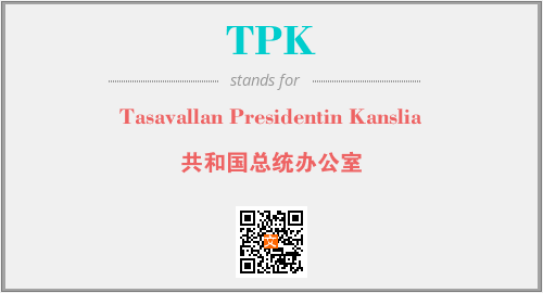 英文缩略词“TPK”经常作为“Tasavallan Presidentin Kanslia”的英文缩写来使用,中文表示:“共和国总统办公室”。本文将详细介绍英文缩写词TPK所代表英文单词,其对应的中文拼音、详细解释以及在英语中的流行度。此外,还有关于缩略词TPK的分类、应用领域及相关应用示例等。