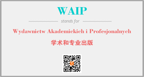 上述内容是“Wydawnictw Akademickich i Profesjonalnych”作为“WAIP”的缩写,解释为“学术和专业出版”时的信息,以及英文缩略词WAIP所代表的英文单词,其对应的中文拼音、详细解释以及在英文中的流行度和相关分类、应用领域及应用示例等。