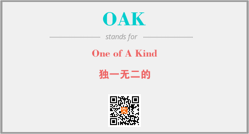 上述内容是“One of A Kind”作为“OAK”的缩写,解释为“独一无二的”时的信息,以及英文缩略词OAK所代表的英文单词,其对应的中文拼音、详细解释以及在英文中的流行度和相关分类、应用领域及应用示例等。