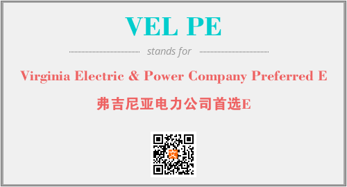 上述内容是“Virginia Electric & Power Company Preferred E”作为“VEL PE”的缩写,解释为“弗吉尼亚电力公司首选E”时的信息,以及英文缩略词VEL PE所代表的英文单词,其对应的中文拼音、详细解释以及在英文中的流行度和相关分类、应用领域及应用示例等。