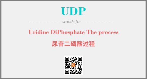 英文缩略词“UDP”经常作为“Uridine DiPhosphate The process”的英文缩写来使用,中文表示:“尿苷二磷酸过程”。本文将详细介绍英文缩写词UDP所代表英文单词,其对应的中文拼音、详细解释以及在英语中的流行度。此外,还有关于缩略词UDP的分类、应用领域及相关应用示例等。