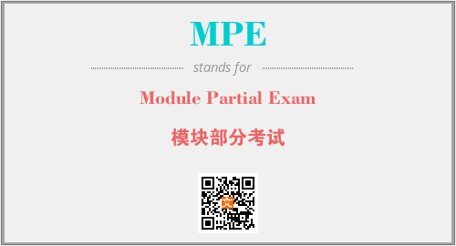上述内容是“Module Partial Exam”作为“MPE”的缩写,解释为“模块部分考试”时的信息,以及英文缩略词MPE所代表的英文单词,其对应的中文拼音、详细解释以及在英文中的流行度和相关分类、应用领域及应用示例等。