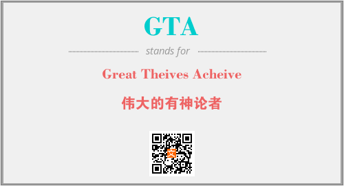 上述内容是“Great Theives Acheive”作为“GTA”的缩写,解释为“伟大的有神论者”时的信息,以及英文缩略词GTA所代表的英文单词,其对应的中文拼音、详细解释以及在英文中的流行度和相关分类、应用领域及应用示例等。