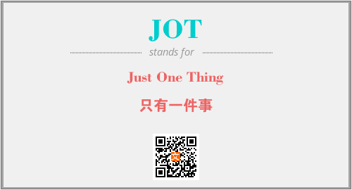 以上为Just One Thing英文缩略词JOT的中文解释,以及该英文缩写在英语的流行度、分类和应用领域方面的信息。