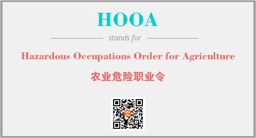 上述内容是“Hazardous Occupations Order for Agriculture”作为“HOOA”的缩写,解释为“农业危险职业令”时的信息,以及英文缩略词HOOA所代表的英文单词,其对应的中文拼音、详细解释以及在英文中的流行度和相关分类、应用领域及应用示例等。