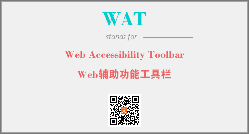 英文缩略词“WAT”经常作为“Web Accessibility Toolbar”的英文缩写来使用,中文表示:“Web辅助功能工具栏”。本文将详细介绍英文缩写词WAT所代表英文单词,其对应的中文拼音、详细解释以及在英语中的流行度。此外,还有关于缩略词WAT的分类、应用领域及相关应用示例等。
