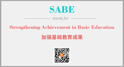 上述内容是“Strengthening Achievement in Basic Education”作为“SABE”的缩写,解释为“加强基础教育成果”时的信息,以及英文缩略词SABE所代表的英文单词,其对应的中文拼音、详细解释以及在英文中的流行度和相关分类、应用领域及应用示例等。