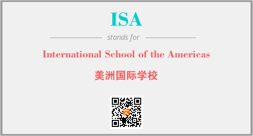 英文缩略词“ISA”经常作为“International School of the Americas”的英文缩写来使用,中文表示:“美洲国际学校”。本文将详细介绍英文缩写词ISA所代表英文单词,其对应的中文拼音、详细解释以及在英语中的流行度。此外,还有关于缩略词ISA的分类、应用领域及相关应用示例等。
