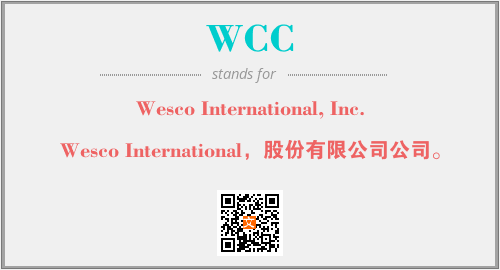 上述内容是“Wesco International, Inc.”作为“WCC”的缩写,解释为“Wesco International,股份有限公司公司。”时的信息,以及英文缩略词WCC所代表的英文单词,其对应的中文拼音、详细解释以及在英文中的流行度和相关分类、应用领域及应用示例等。