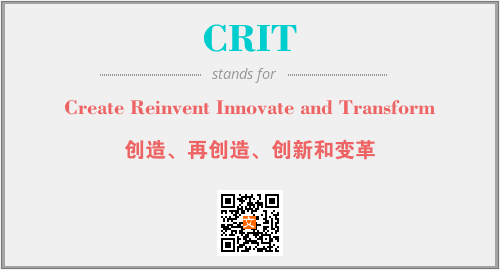 上述内容是“Create Reinvent Innovate and Transform”作为“CRIT”的缩写,解释为“创造、再创造、创新和变革”时的信息,以及英文缩略词CRIT所代表的英文单词,其对应的中文拼音、详细解释以及在英文中的流行度和相关分类、应用领域及应用示例等。