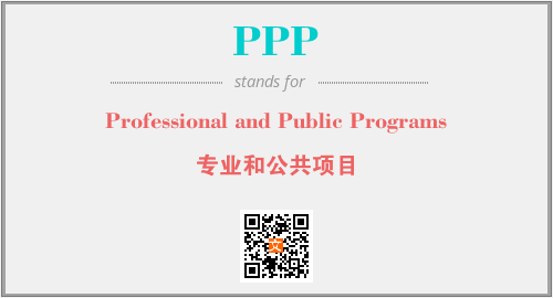 上述内容是“Professional and Public Programs”作为“PPP”的缩写,解释为“专业和公共项目”时的信息,以及英文缩略词PPP所代表的英文单词,其对应的中文拼音、详细解释以及在英文中的流行度和相关分类、应用领域及应用示例等。