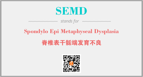 上述内容是“Spondylo Epi Metaphyseal Dysplasia”作为“SEMD”的缩写,解释为“脊椎表干骺端发育不良”时的信息,以及英文缩略词SEMD所代表的英文单词,其对应的中文拼音、详细解释以及在英文中的流行度和相关分类、应用领域及应用示例等。