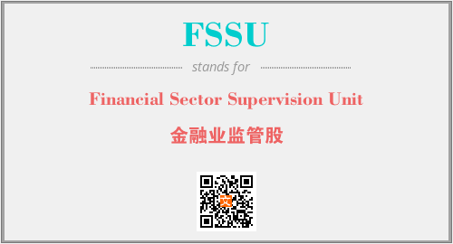 英文缩略词“FSSU”经常作为“Financial Sector Supervision Unit”的英文缩写来使用,中文表示:“金融业监管股”。本文将详细介绍英文缩写词FSSU所代表英文单词,其对应的中文拼音、详细解释以及在英语中的流行度。此外,还有关于缩略词FSSU的分类、应用领域及相关应用示例等。