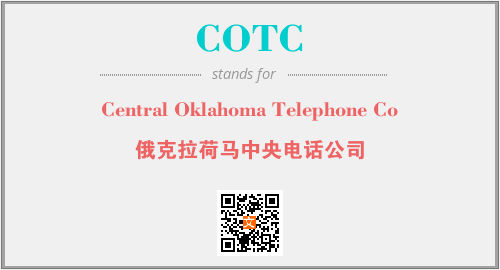 以上为Central Oklahoma Telephone Co英文缩略词COTC的中文解释,以及该英文缩写在英语的流行度、分类和应用领域方面的信息。
