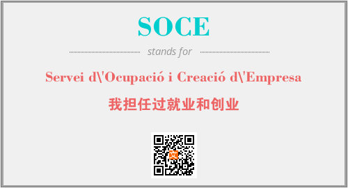 上述内容是“Servei d\'Ocupació i Creació d\'Empresa”作为“SOCE”的缩写,解释为“我担任过就业和创业”时的信息,以及英文缩略词SOCE所代表的英文单词,其对应的中文拼音、详细解释以及在英文中的流行度和相关分类、应用领域及应用示例等。