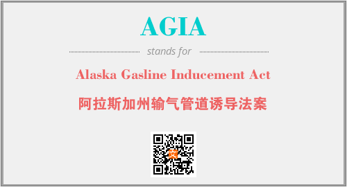 上述内容是“Alaska Gasline Inducement Act”作为“AGIA”的缩写,解释为“阿拉斯加州输气管道诱导法案”时的信息,以及英文缩略词AGIA所代表的英文单词,其对应的中文拼音、详细解释以及在英文中的流行度和相关分类、应用领域及应用示例等。