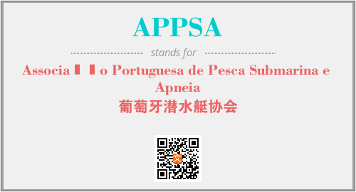 上述内容是“Associação Portuguesa de Pesca Submarina e Apneia”作为“APPSA”的缩写,解释为“葡萄牙潜水艇协会”时的信息,以及英文缩略词APPSA所代表的英文单词,其对应的中文拼音、详细解释以及在英文中的流行度和相关分类、应用领域及应用示例等。