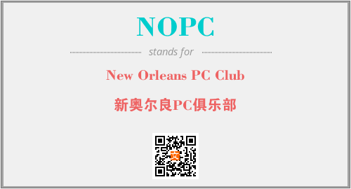 以上为New Orleans PC Club英文缩略词NOPC的中文解释,以及该英文缩写在英语的流行度、分类和应用领域方面的信息。