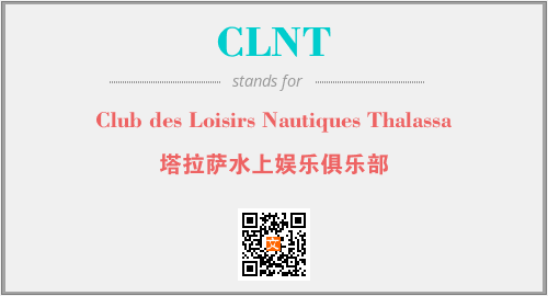 上述内容是“Club des Loisirs Nautiques Thalassa”作为“CLNT”的缩写,解释为“塔拉萨水上娱乐俱乐部”时的信息,以及英文缩略词CLNT所代表的英文单词,其对应的中文拼音、详细解释以及在英文中的流行度和相关分类、应用领域及应用示例等。