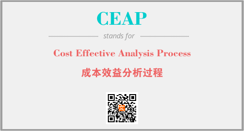 英文缩略词“CEAP”经常作为“Cost Effective Analysis Process”的英文缩写来使用,中文表示:“成本效益分析过程”。本文将详细介绍英文缩写词CEAP所代表英文单词,其对应的中文拼音、详细解释以及在英语中的流行度。此外,还有关于缩略词CEAP的分类、应用领域及相关应用示例等。