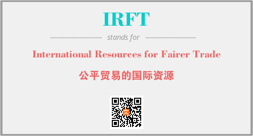 以上为International Resources for Fairer Trade英文缩略词IRFT的中文解释,以及该英文缩写在英语的流行度、分类和应用领域方面的信息。
