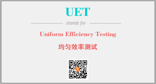 英文缩略词“UET”经常作为“Uniform Efficiency Testing”的英文缩写来使用,中文表示:“均匀效率测试”。本文将详细介绍英文缩写词UET所代表英文单词,其对应的中文拼音、详细解释以及在英语中的流行度。此外,还有关于缩略词UET的分类、应用领域及相关应用示例等。