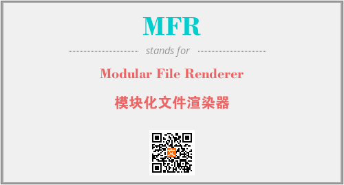 英文缩略词“MFR”经常作为“Modular File Renderer”的英文缩写来使用,中文表示:“模块化文件渲染器”。本文将详细介绍英文缩写词MFR所代表英文单词,其对应的中文拼音、详细解释以及在英语中的流行度。此外,还有关于缩略词MFR的分类、应用领域及相关应用示例等。