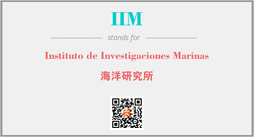 英文缩略词“IIM”经常作为“Instituto de Investigaciones Marinas”的英文缩写来使用,中文表示:“海洋研究所”。本文将详细介绍英文缩写词IIM所代表英文单词,其对应的中文拼音、详细解释以及在英语中的流行度。此外,还有关于缩略词IIM的分类、应用领域及相关应用示例等。