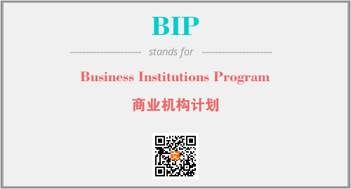 上述内容是“Business Institutions Program”作为“BIP”的缩写,解释为“商业机构计划”时的信息,以及英文缩略词BIP所代表的英文单词,其对应的中文拼音、详细解释以及在英文中的流行度和相关分类、应用领域及应用示例等。
