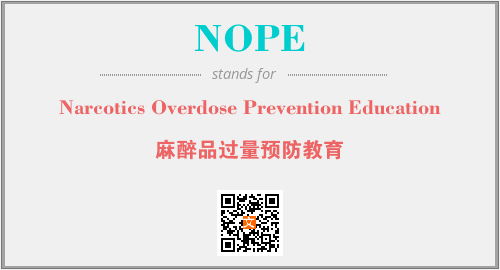 以上为Narcotics Overdose Prevention Education英文缩略词NOPE的中文解释,以及该英文缩写在英语的流行度、分类和应用领域方面的信息。