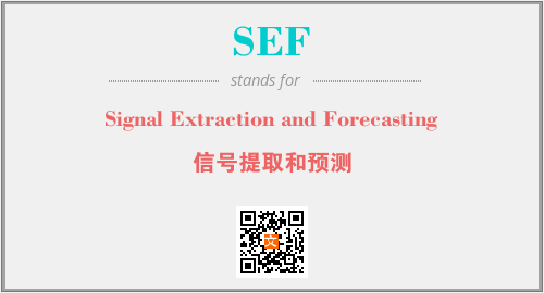 英文缩略词“SEF”经常作为“Signal Extraction and Forecasting”的英文缩写来使用,中文表示:“信号提取和预测”。本文将详细介绍英文缩写词SEF所代表英文单词,其对应的中文拼音、详细解释以及在英语中的流行度。此外,还有关于缩略词SEF的分类、应用领域及相关应用示例等。