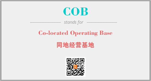 英文缩略词“COB”经常作为“Co-located Operating Base”的英文缩写来使用,中文表示:“同地经营基地”。本文将详细介绍英文缩写词COB所代表英文单词,其对应的中文拼音、详细解释以及在英语中的流行度。此外,还有关于缩略词COB的分类、应用领域及相关应用示例等。