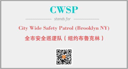 以上为City Wide Safety Patrol (Brooklyn NY)英文缩略词CWSP的中文解释,以及该英文缩写在英语的流行度、分类和应用领域方面的信息。