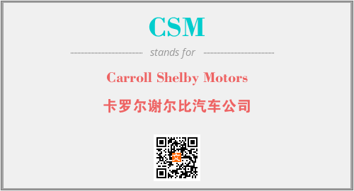 上述内容是“Carroll Shelby Motors”作为“CSM”的缩写,解释为“卡罗尔谢尔比汽车公司”时的信息,以及英文缩略词CSM所代表的英文单词,其对应的中文拼音、详细解释以及在英文中的流行度和相关分类、应用领域及应用示例等。