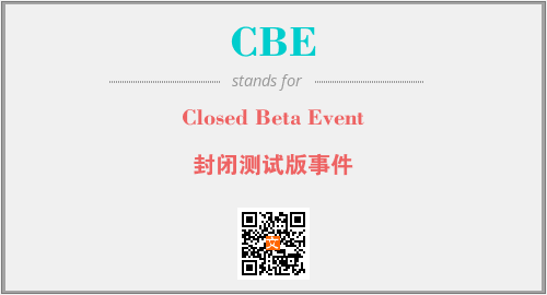 以上为Closed Beta Event英文缩略词CBE的中文解释,以及该英文缩写在英语的流行度、分类和应用领域方面的信息。