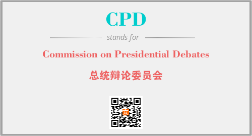 以上为Commission on Presidential Debates英文缩略词CPD的中文解释,以及该英文缩写在英语的流行度、分类和应用领域方面的信息。