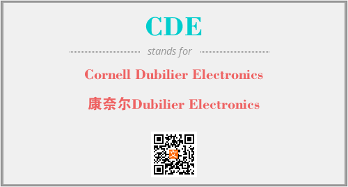 英文缩略词“CDE”经常作为“Cornell Dubilier Electronics”的英文缩写来使用,中文表示:“康奈尔Dubilier Electronics”。本文将详细介绍英文缩写词CDE所代表英文单词,其对应的中文拼音、详细解释以及在英语中的流行度。此外,还有关于缩略词CDE的分类、应用领域及相关应用示例等。