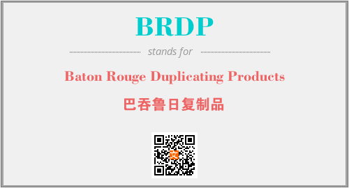英文缩略词“BRDP”经常作为“Baton Rouge Duplicating Products”的英文缩写来使用,中文表示:“巴吞鲁日复制品”。本文将详细介绍英文缩写词BRDP所代表英文单词,其对应的中文拼音、详细解释以及在英语中的流行度。此外,还有关于缩略词BRDP的分类、应用领域及相关应用示例等。