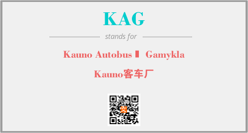 英文缩略词“KAG”经常作为“Kauno Autobusų Gamykla”的英文缩写来使用,中文表示:“Kauno客车厂”。本文将详细介绍英文缩写词KAG所代表英文单词,其对应的中文拼音、详细解释以及在英语中的流行度。此外,还有关于缩略词KAG的分类、应用领域及相关应用示例等。