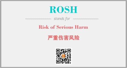上述内容是“Risk of Serious Harm”作为“ROSH”的缩写,解释为“严重伤害风险”时的信息,以及英文缩略词ROSH所代表的英文单词,其对应的中文拼音、详细解释以及在英文中的流行度和相关分类、应用领域及应用示例等。